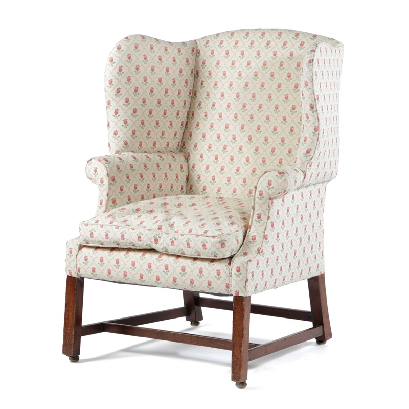 A GEORGE III MAHOGANY WING ARMCHAIR