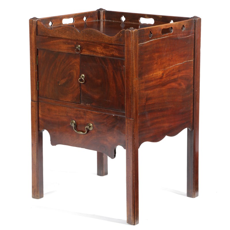 A GEORGE III MAHOGANY TRAY-TOP BEDSIDE COMMODE