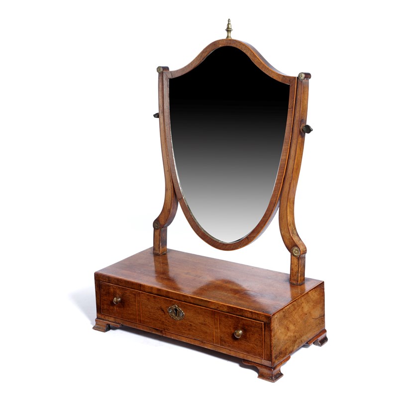 A GEORGE III MAHOGANY DRESSING TABLE MIRROR