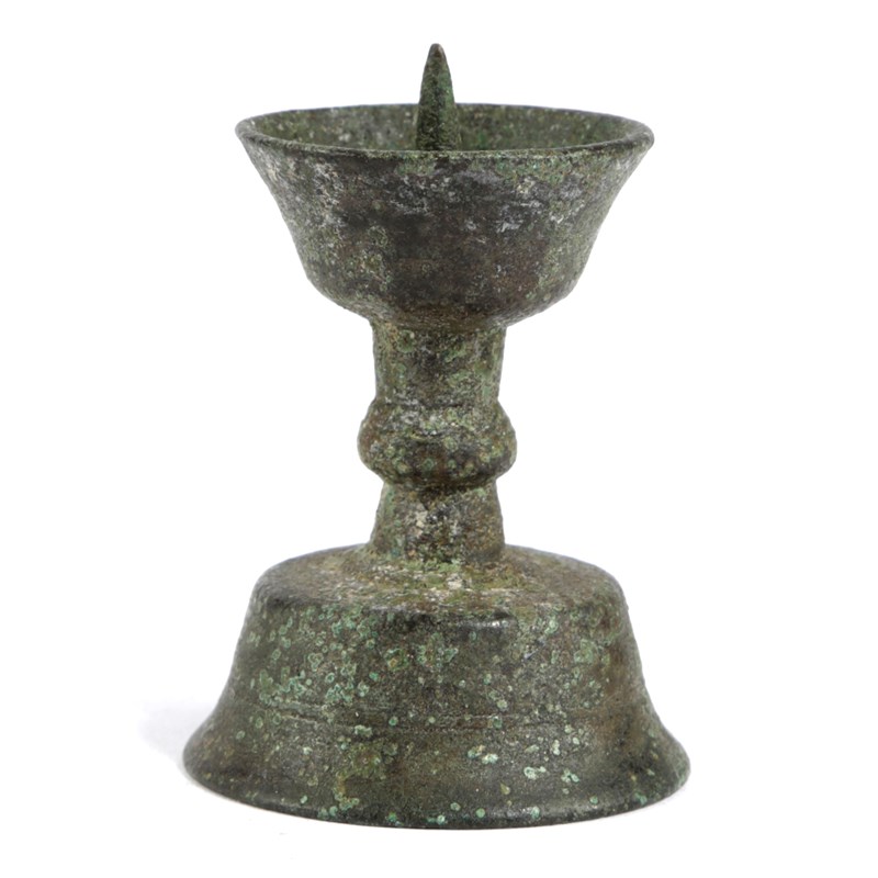A MINIATURE BRONZE PRICKET CANDLESTICK