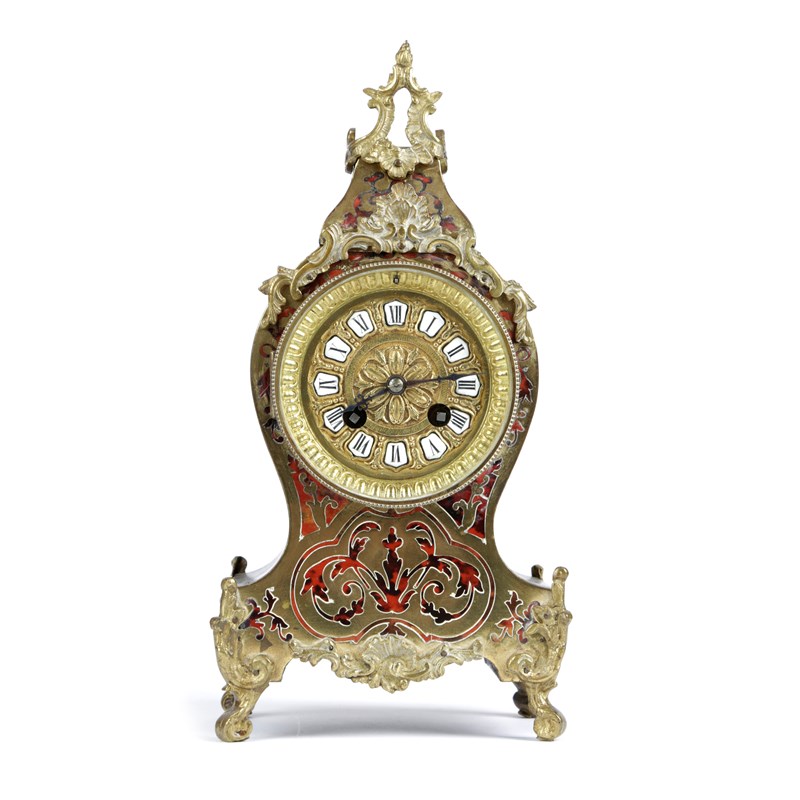 A FRENCH BOULLE MARQUETRY MANTEL CLOCK