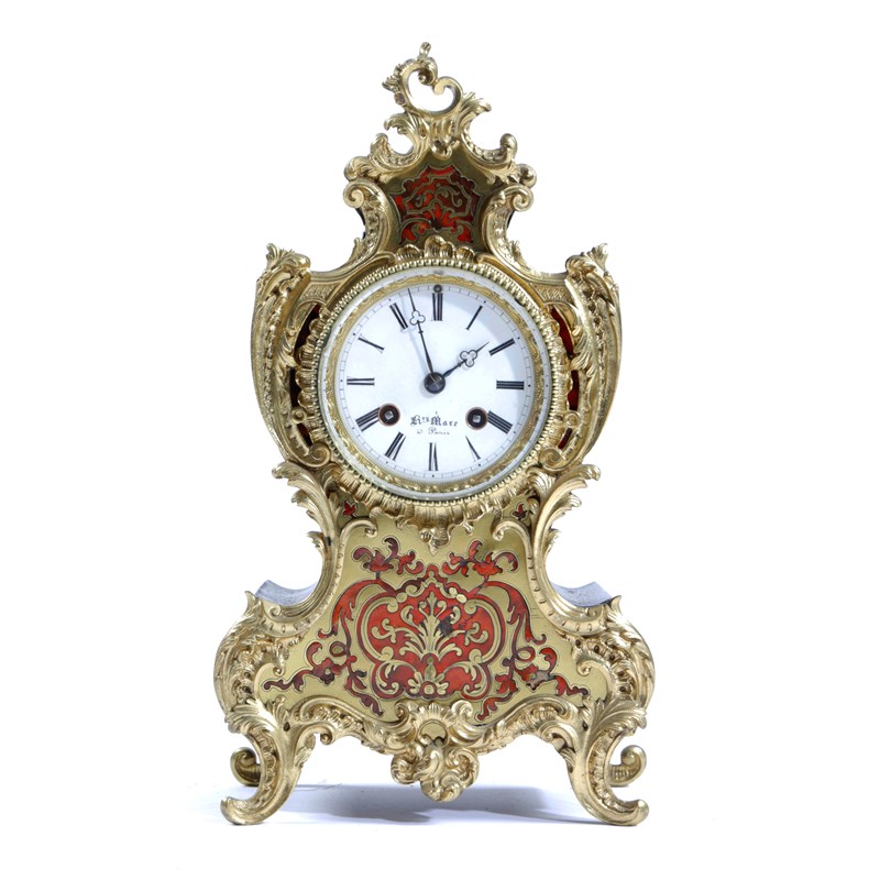 A FRENCH BOULLE MARQUETRY MANTEL CLOCK