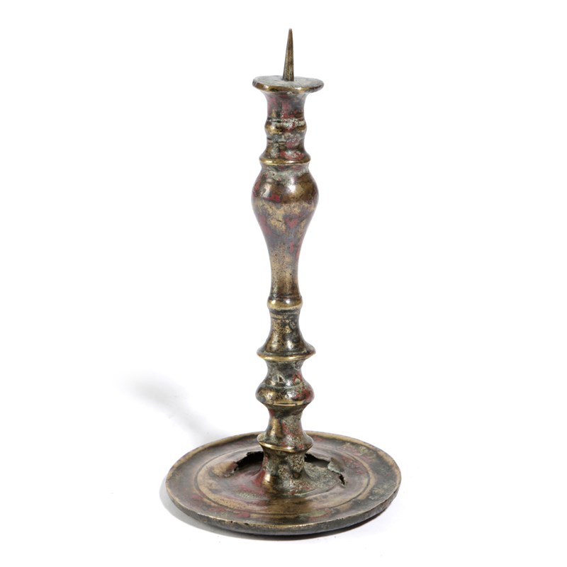A EUROPEAN BRASS PRICKET CANDLESTICK