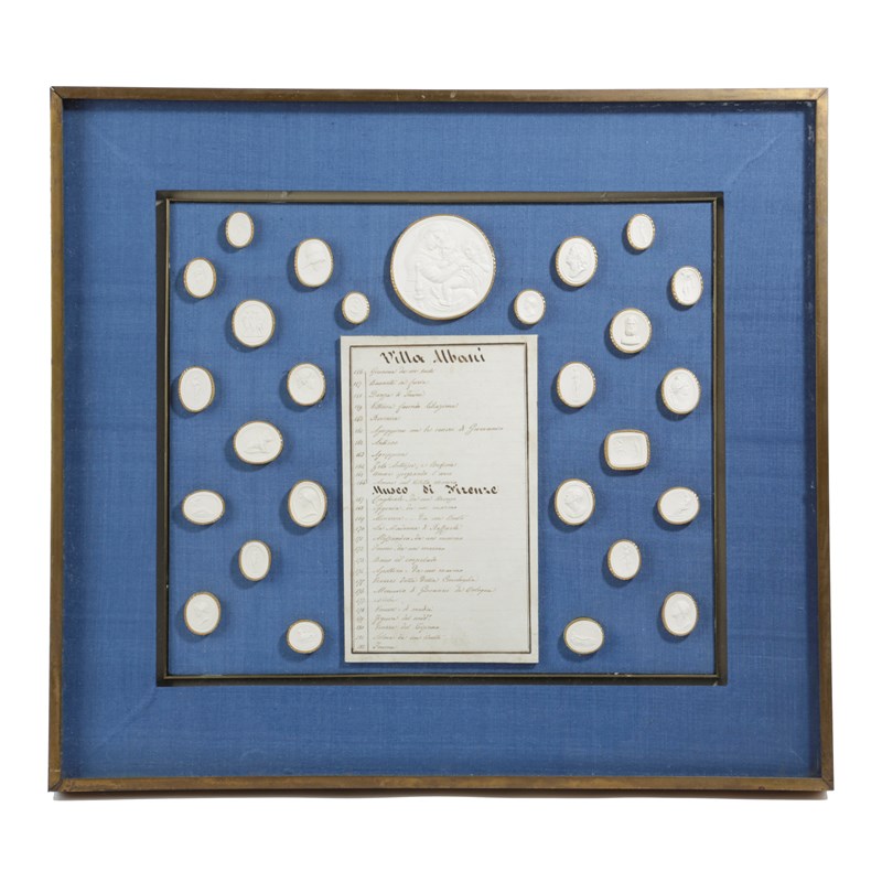 with original gilded paper frames, mounted around an inventory of the intaglios, numbered '156 to 182' from 'Villa Albani' and 'Museo di Firenze'
