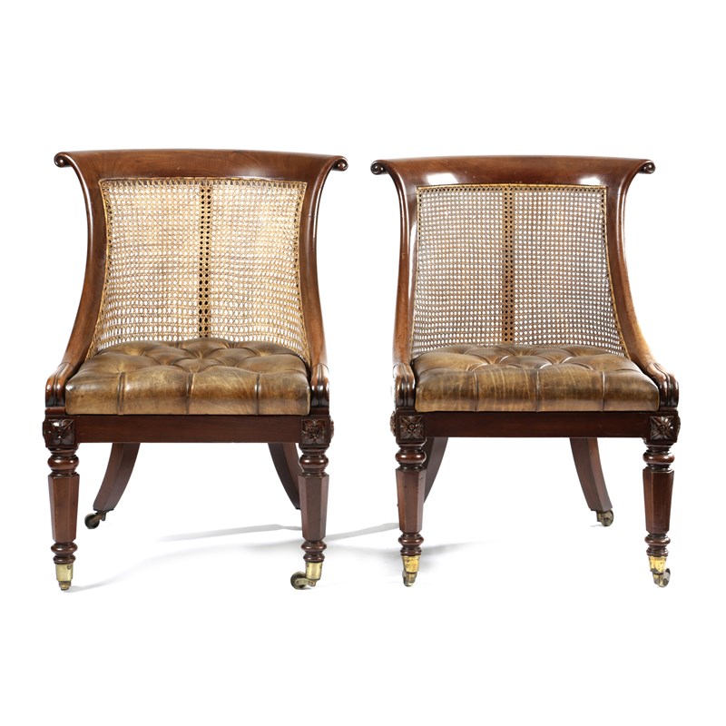 A PAIR OF REGENCY MAHOGANY LIBRARY BERGERES