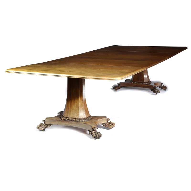 A GEORGE IV MAHOGANY TWIN PEDESTAL DINING TABLE