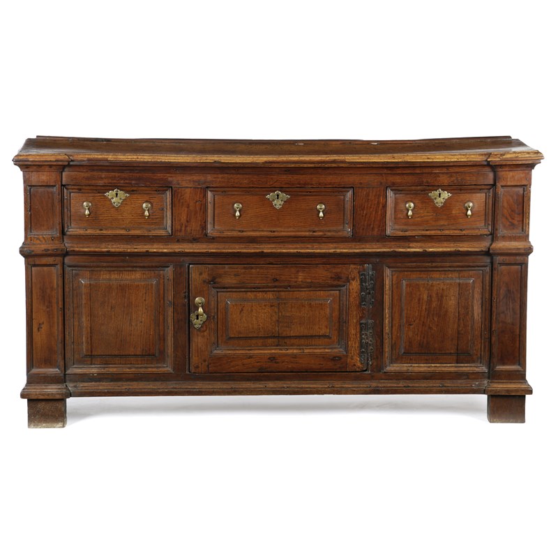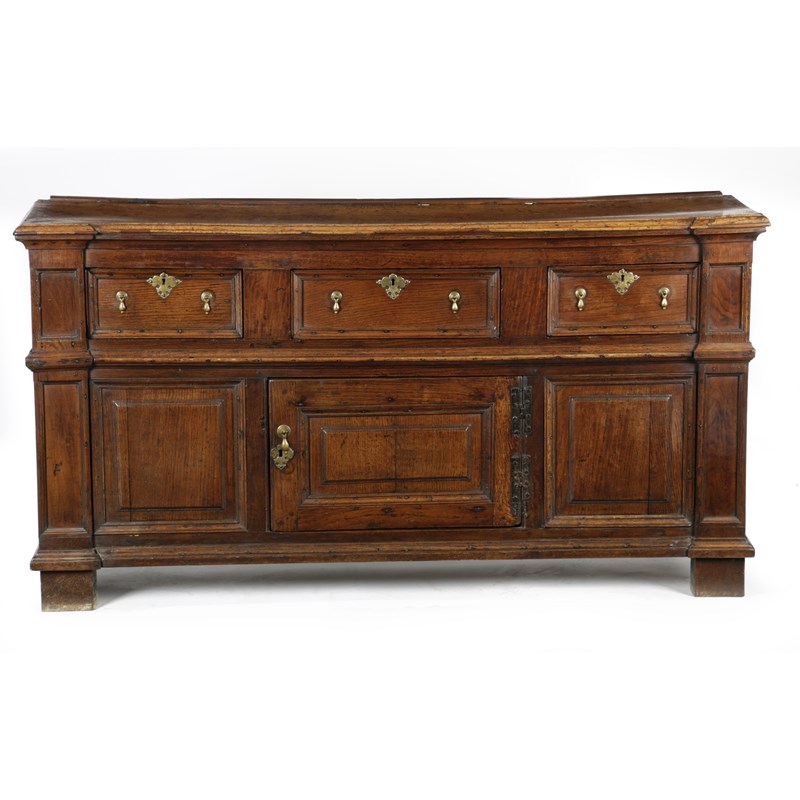 A WILLIAM AND MARY FRUITWOOD AND OAK ENCLOSED DRESSER BASE