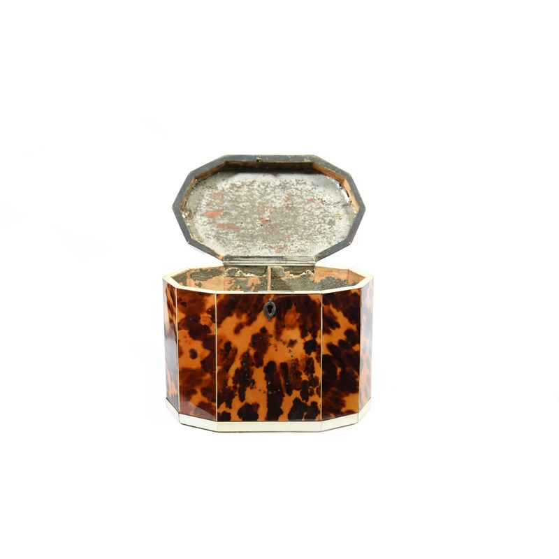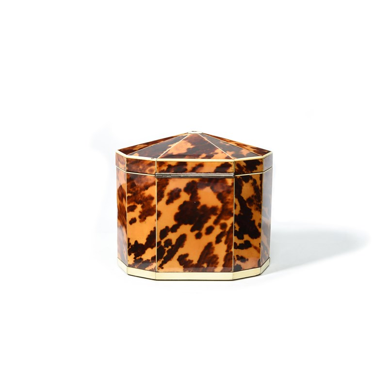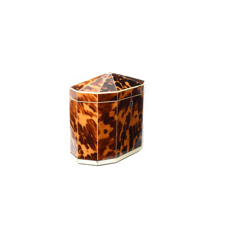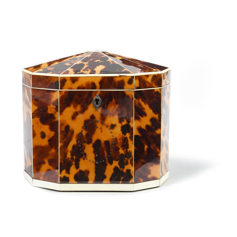 λ A GEORGE III BLONDE TORTOISESHELL TEA CADDY
