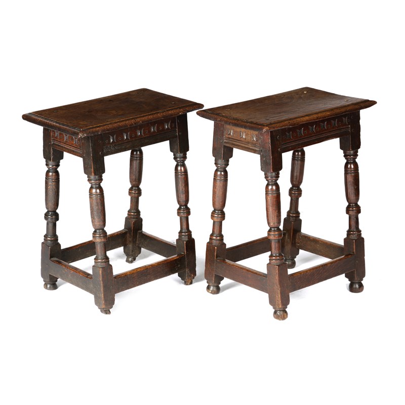 A PAIR OF JAMES I OAK JOINT STOOLS