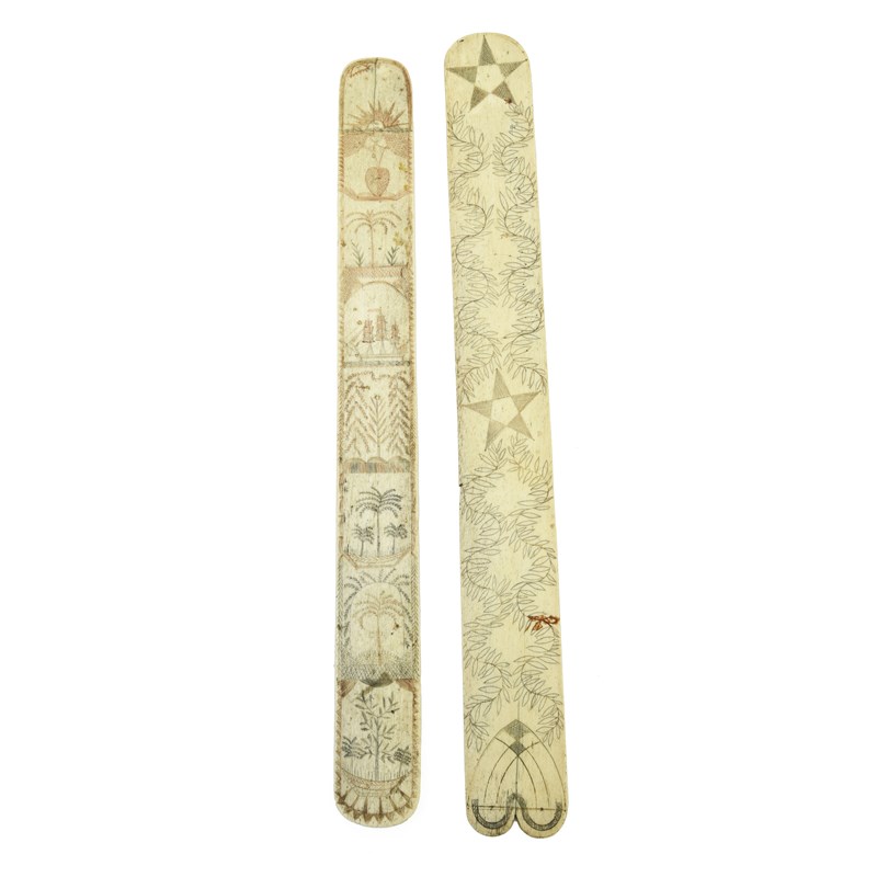 TWO SAILOR'S BONE SCRIMSHAW STAY BUSKS