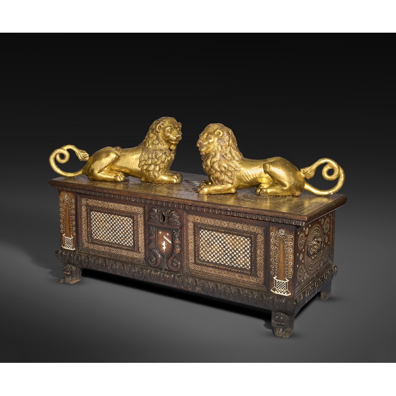 AN IMPRESSIVE PAIR OF ITALIAN CARVED GILTWOOD LIONS