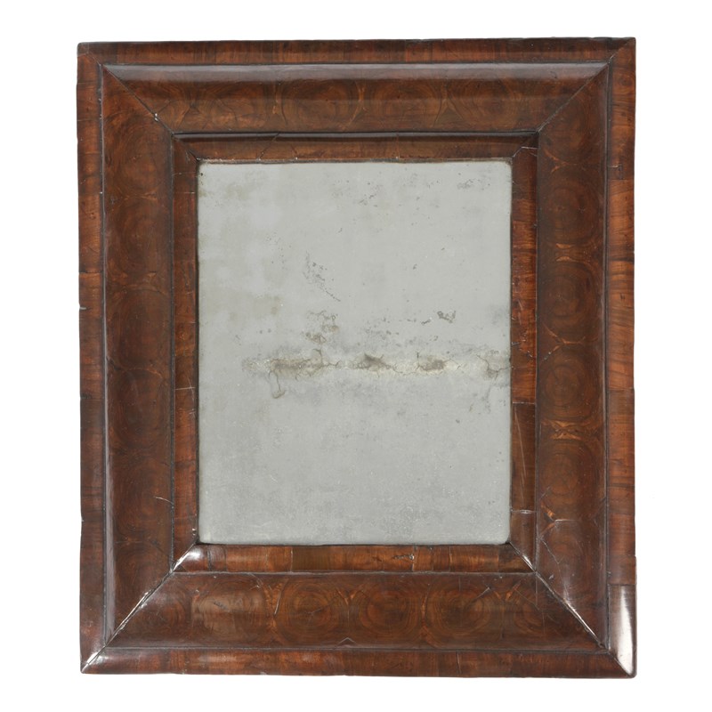 A WILLIAM AND MARY OLIVEWOOD OYSTER VENEERED WALL MIRROR
