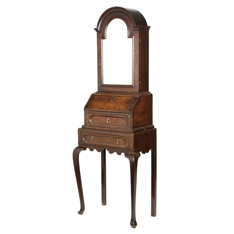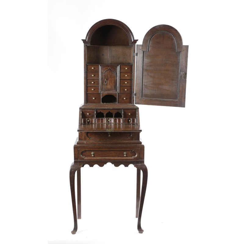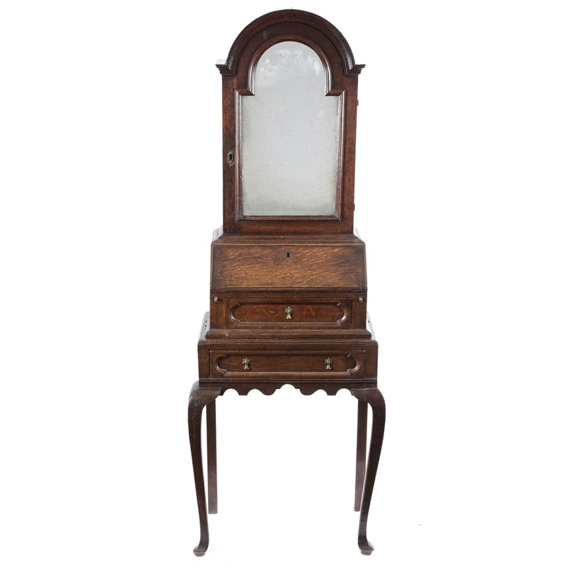 A QUEEN ANNE OAK BUREAU CABINET ON STAND