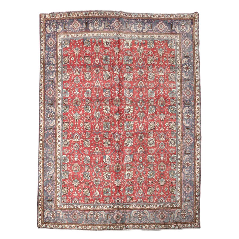 the strawberry field with a lattice of vines and palmettes, enclosed by faded indigo borders of palmettes and angular vines, flanked by ivory guard stripes