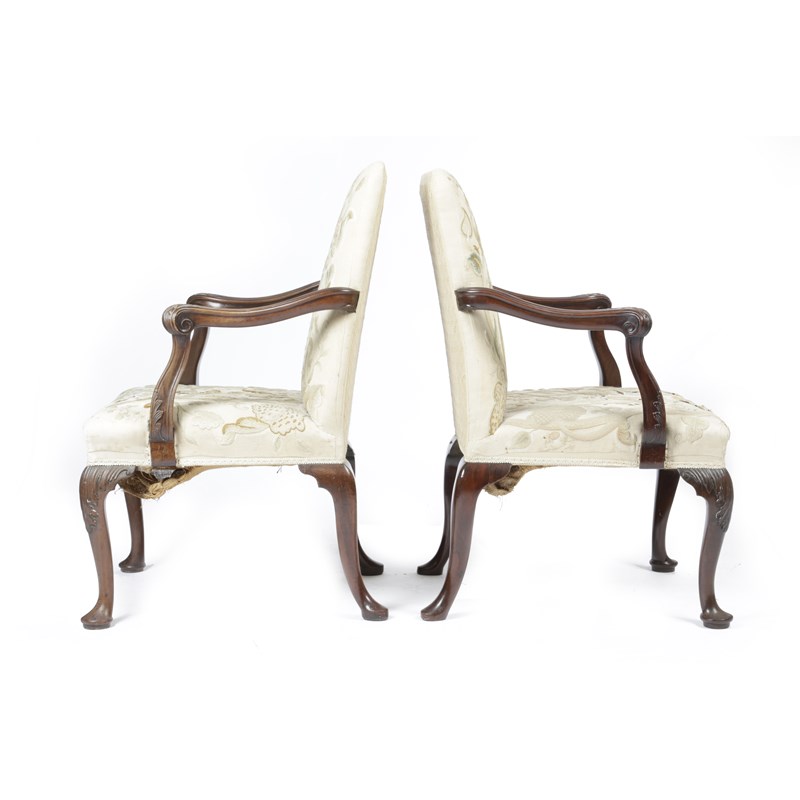 A FINE PAIR OF GEORGE II MAHOGANY ARMCHAIRS