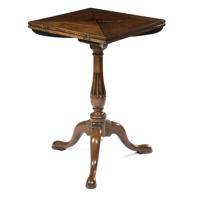 A GEORGE II MAHOGANY ENVELOPE CARD TABLE