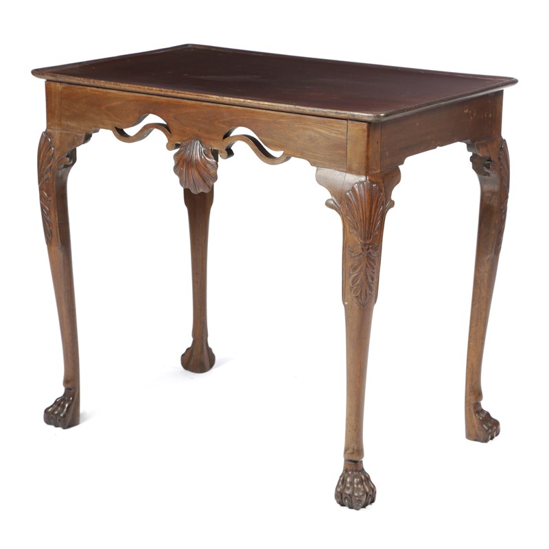 AN EARLY GEORGE III IRISH MAHOGANY SILVER TABLE