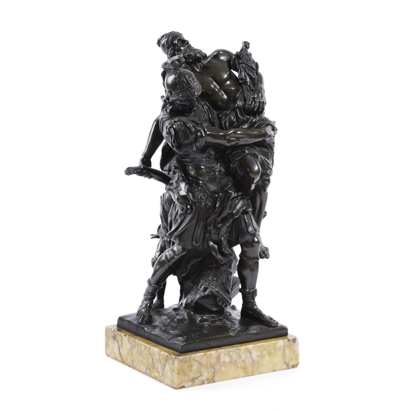 A BRONZE GROUP OF AENEAS CARRYING ANCHISES WITH ASCANIUS