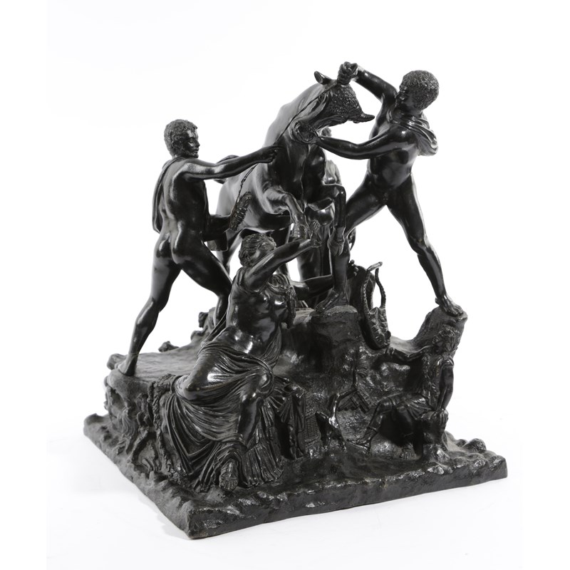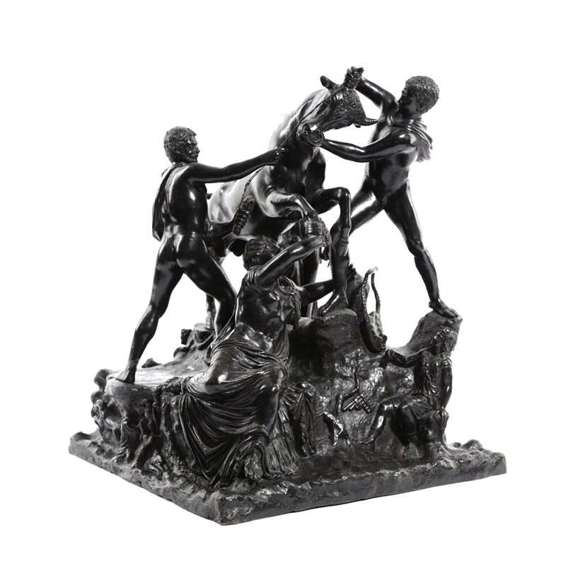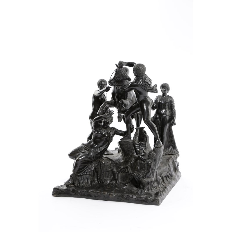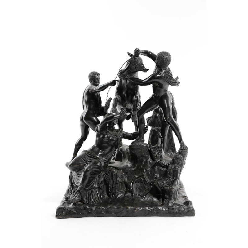 depicting Letus and Amphion attempting to tie Dirce to an enraged bull, with Endymion and Antiope, on a naturalistic base with a figure and fighting animals