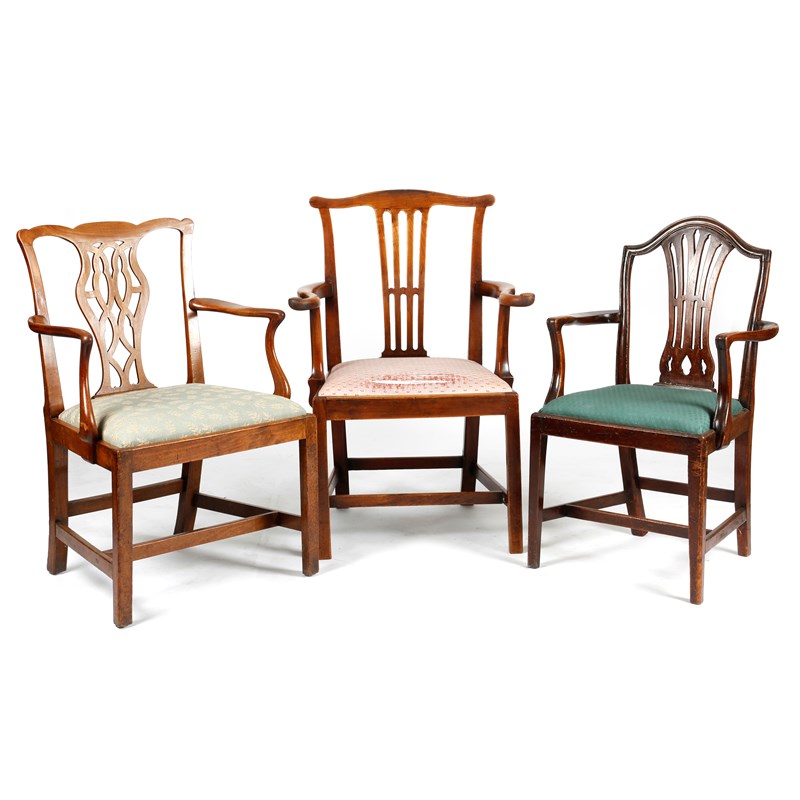 THREE GEORGE III OPEN ARMCHAIRS SECOND HALF 18TH CENTURY each with a pierced splat back