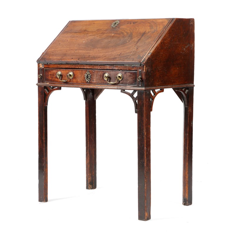 AN EARLY GEORGE III MAHOGANY BUREAU