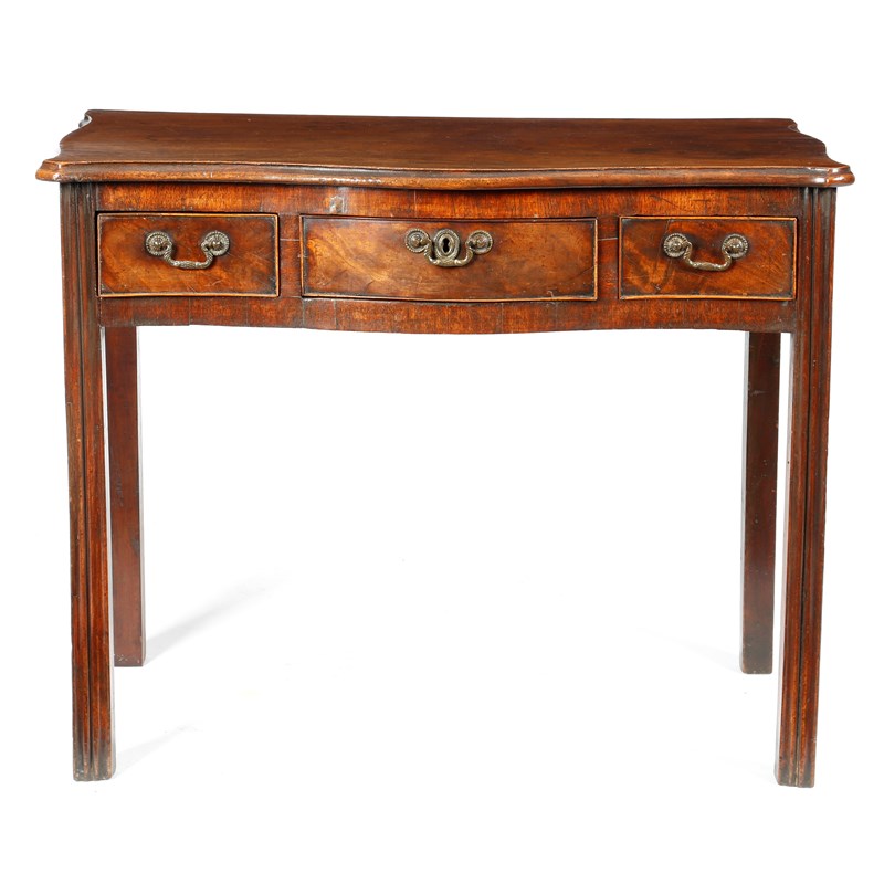 A GEORGE III MAHOGANY SERPENTINE SIDE TABLE