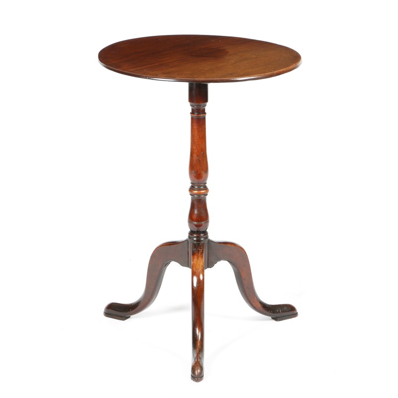 A MAHOGANY AND FRUITWOOD TRIPOD OCCASIONAL TABLE 18TH CENTURY BUT TOP AND BASE ASSOCIATED the...
