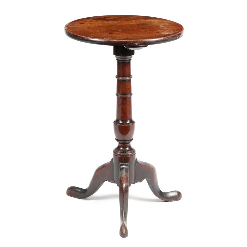 A GEORGE III MAHOGANY TRIPOD OCCASIONAL TABLE C.1760 the circular fixed top on a ring turned...