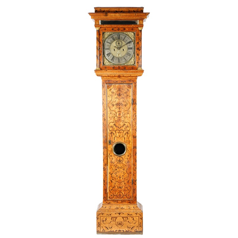 A MARQUETRY LONGCASE CLOCK BY JOHN GAVEL