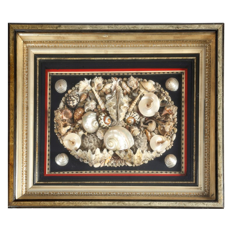 A LARGE VICTORIAN SHELLWORK PICTURE c.1870-80 formed from numerous different shells