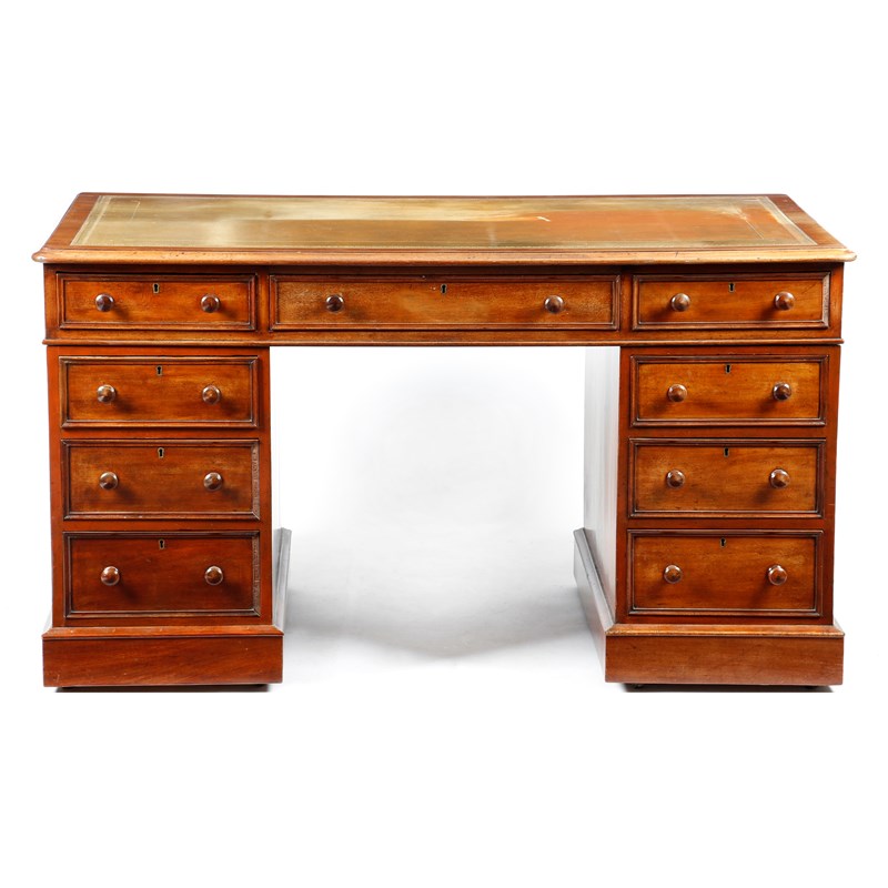 A VICTORIAN MAHOGANY TWIN PEDESTAL DESK