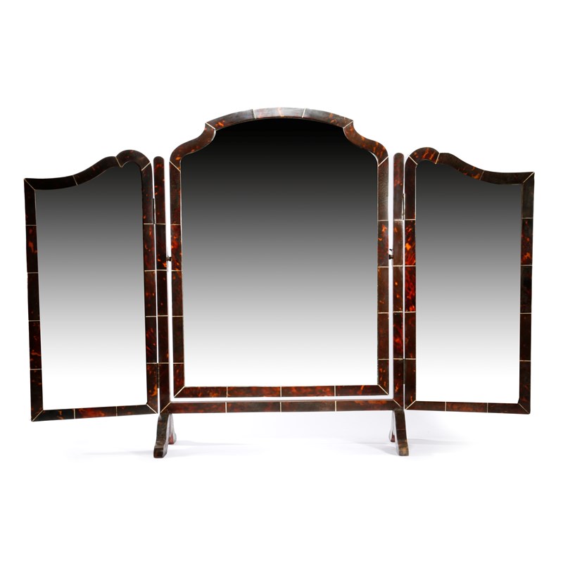 λ A TORTOISESHELL VENEERED TRIPTYCH DRESSING TABLE MIRROR