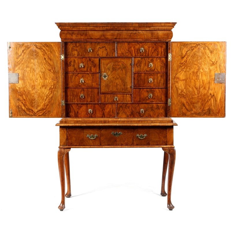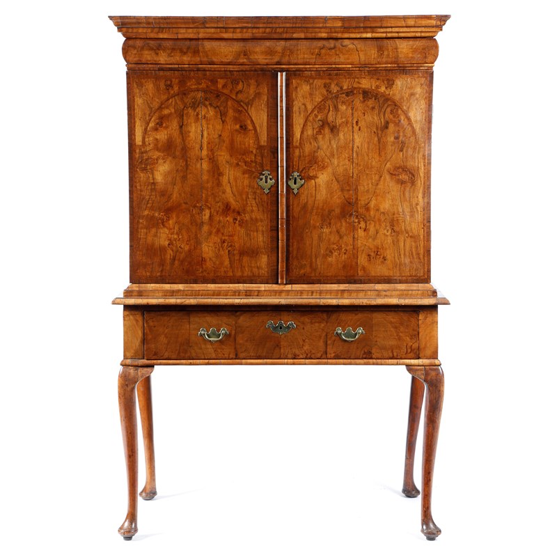 A WILLIAM AND MARY WALNUT CABINET ON STAND