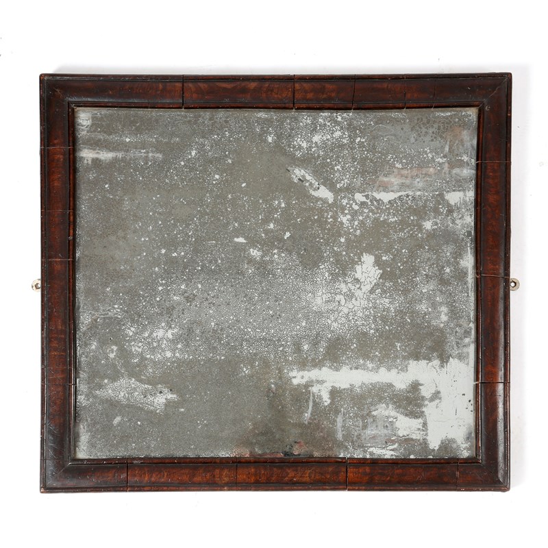 A WALNUT WALL MIRROR 18TH CENTURY AND LATER the rectangular plate within a moulded frame 53.5 x 60cm
