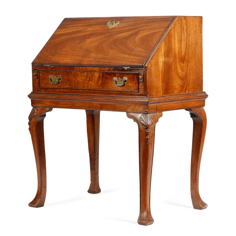 A GEORGE II MAHOGANY BUREAU ON STAND
