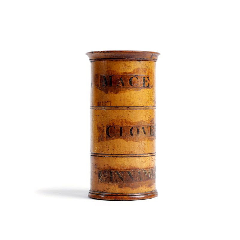the screw-off lid above three divisions, each with a label 'Mace', 'Cloves' and 'Cinnamon'