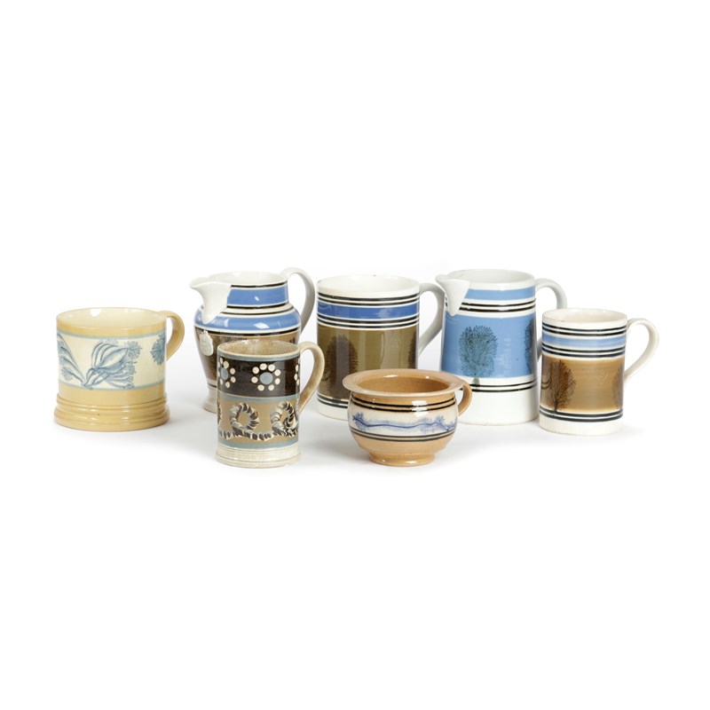 A SMALL COLLECTION OF POTTERY MOCHA WARE