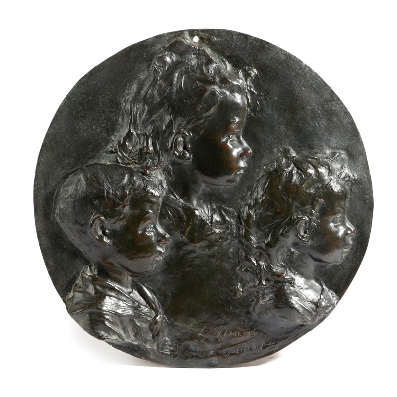 A FRENCH BRONZE RELIEF PORTRAIT RONDEL