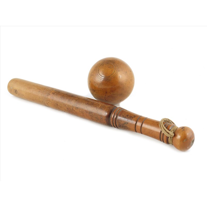 A 19th century turned boxwood truncheon, 15½in (39.4cm) long and a 19th century turned boxwood jack, 3½in (9cm) diameter. (2)