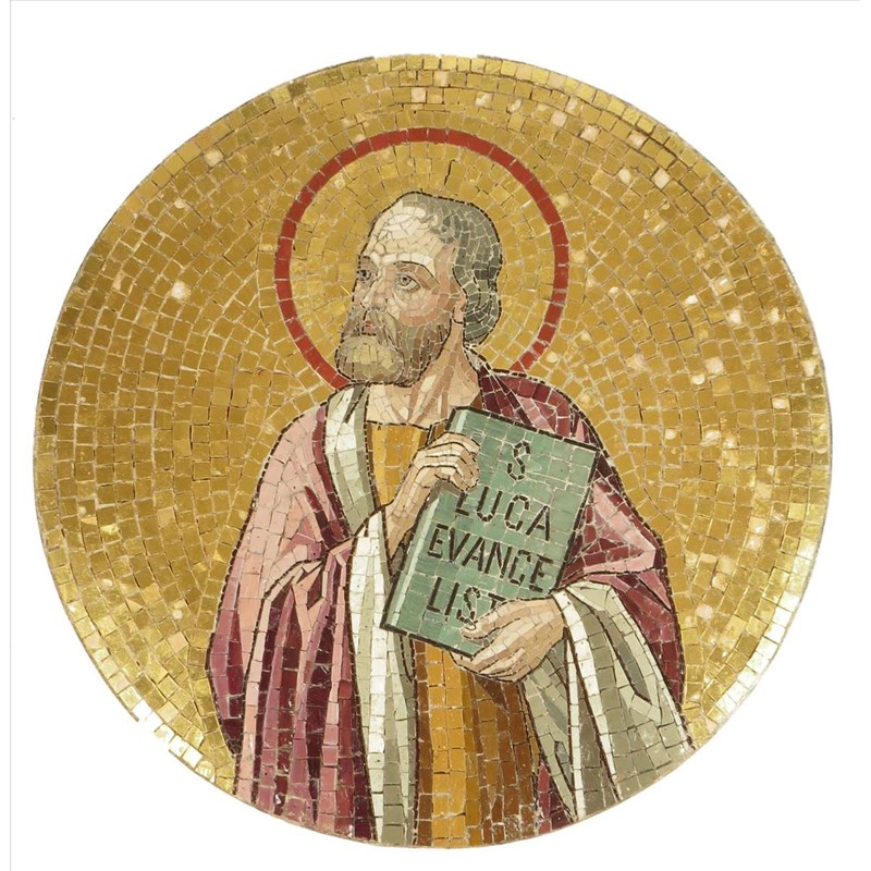 A glass mosaic rondel of St. Luke