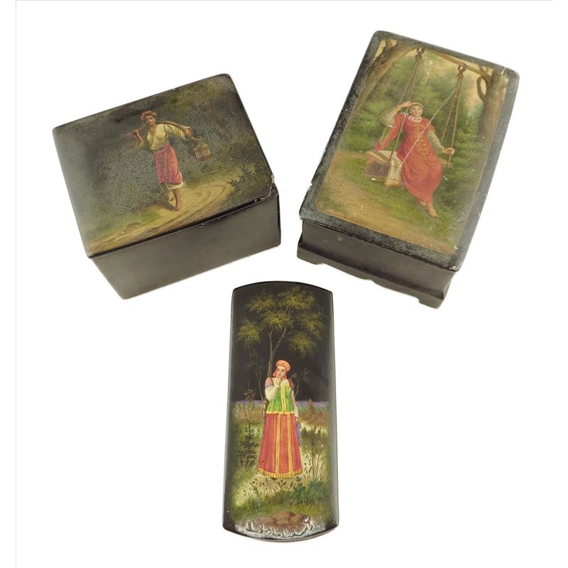 Three Russian lacquer boxes