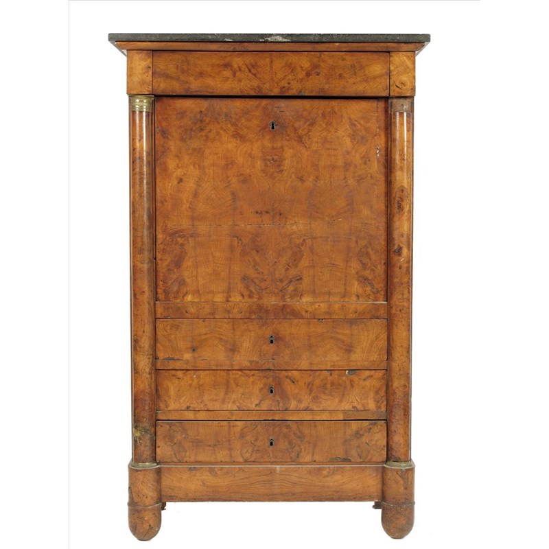 A 19th century continental ash secrétaire à abattant, with a marble top, the interior with a recess above drawers, 56¾in (144cm) high, 35in (89cm) wide, 17in (43.2cm) deep.
