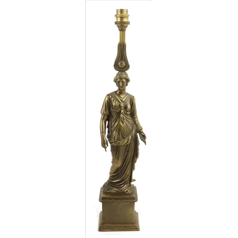 An Italian bronze classical figural lamp, the reverse of the plinth with plaque 'GARGIULO CANNONE E Ci, FONDERIA DI BRONZO, IX MONISTERO S.EFRAMO VECCHIO, NAPOLI,' 18¾in (47.5cm) high.