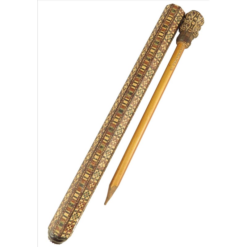 A Victorian Tunbridge ware sealing wax holder attributed to Thomas Barton, with a screw-off lid the other with a hob nail cut end, 9½in (24cm) long.