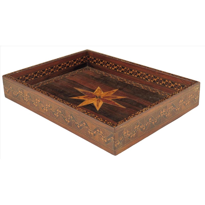 ‡A rare Victorian old Tunbridge ware and wood mosaic rosewood desk tray, the centre with a wood mosaic parquetry star, 2in (5cm) high, 12in (30.3cm) wide, 9in (23cm) deep.