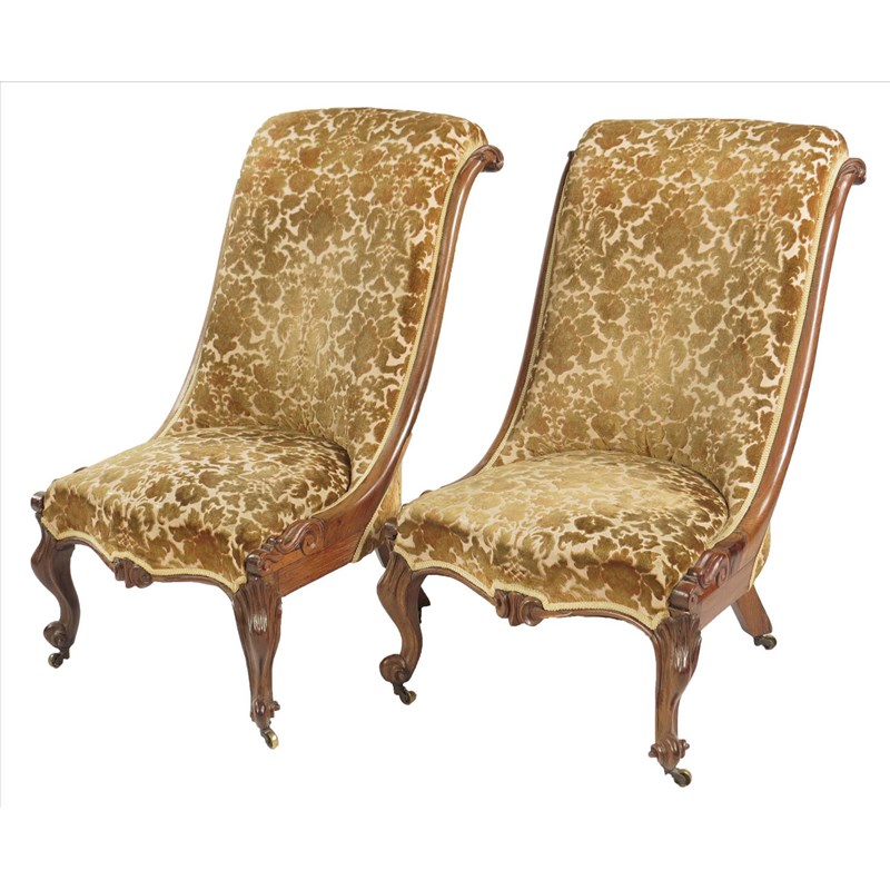 ‡A pair of early Victorian rosewood nursing chairs, on brass castors. (2)