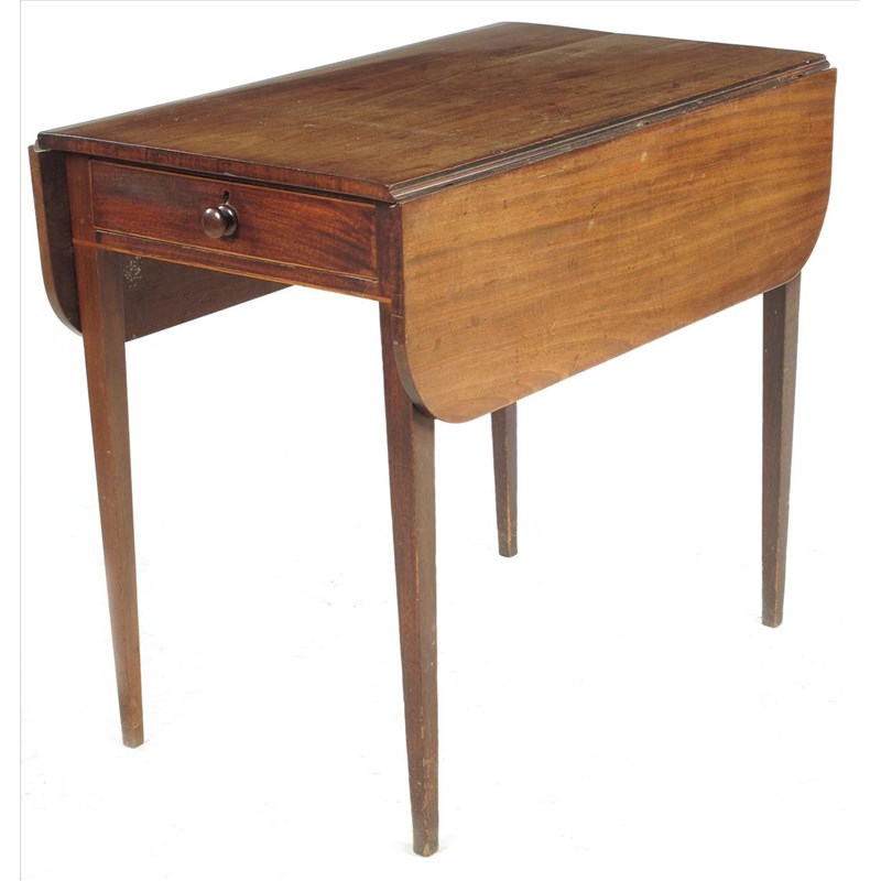 A late George III mahogany Pembroke table, 28in (71cm) high, 31½in (80cm) wide, 19½in (49.2cm) deep.