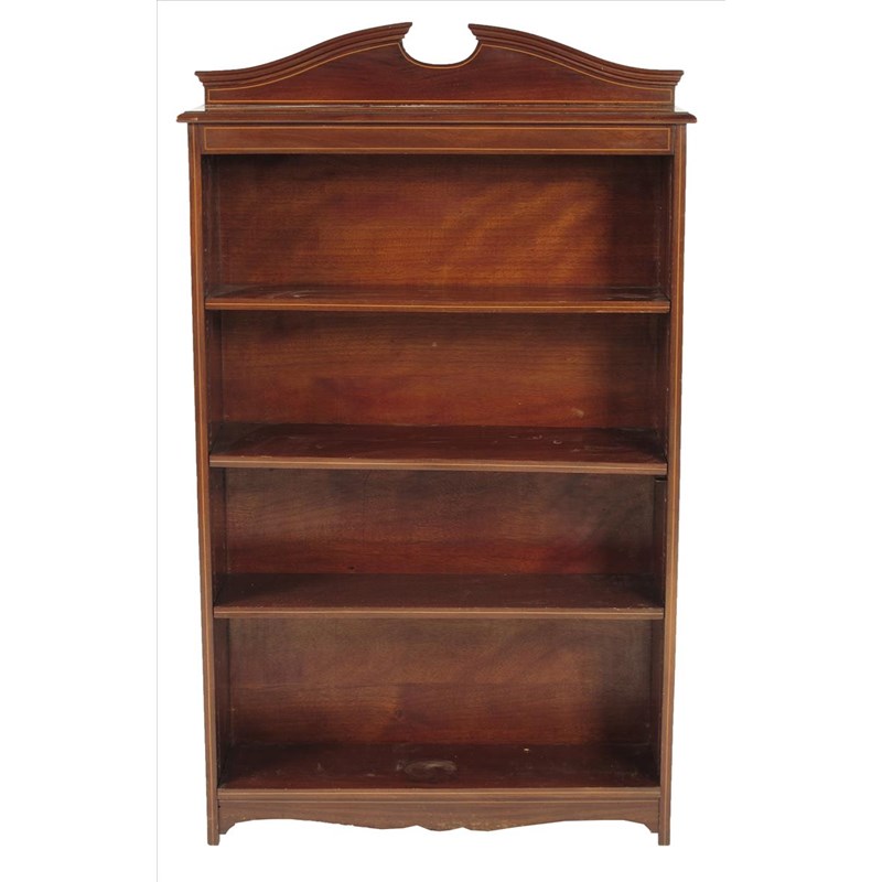 An Edwardian mahogany open bookcase, with stringing and adjustable shelves, 45½in (115.5cm) high, 27in (68.5cm) wide, 7¾in (19.6cm) deep.