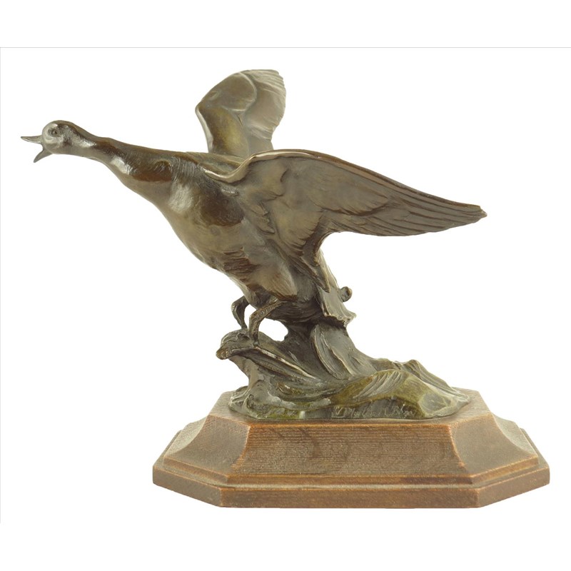 ‡Phyliss Mary Bone (1896-1972). Duck flying out of water, bronze, signed, on a canted rectangular oak base, 9¼in (23.5cm) high.