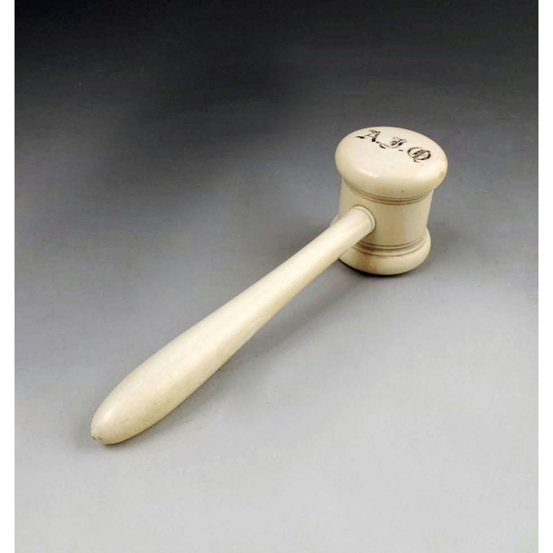 λ A Victorian turned ivory gavel, with the initials 'A.F.Q', 15.9cm long.